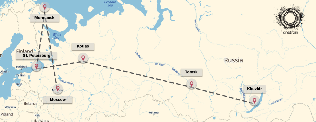 Сinetrain: Russian Winter is the third edition of Cinetrain. It took place in January 2013 on the way from Moscow and back, through the Russian North and Siberia and took 21 participants from 14 countries through 15500km of Russian winter by train! Within a month and with average temperature around -15°C, they shot and edited 7 short documentaries shedding a new light at common stereotypes about Russia.